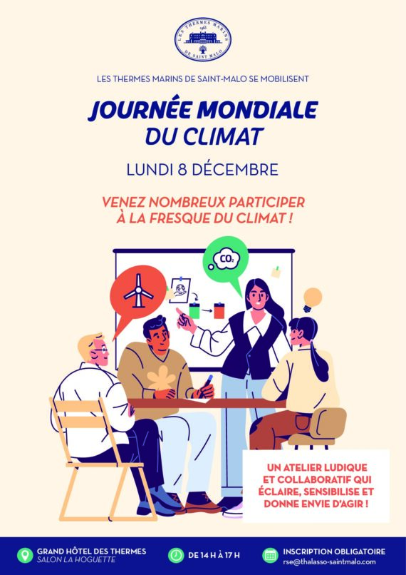 À l’occasion de la Journée Mondiale du Climat, le Groupe des Thermes Marins de Saint-Malo se mobilise et vous invite à une animation autour d’un atelier ludique et collaboratif.